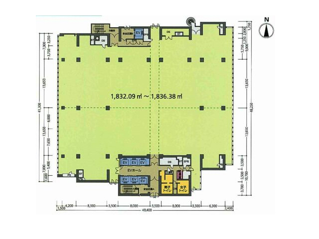 また、2000年にリニューアルさているため、設備面も整っています。フロアスペックとしては、天井高が2650㎜、OAフロアは45㎜で、快適で機能的なオフィス環境が提供されています。エレベーターは7基設置されており、さらに荷物用エレベーターも完備しているため、ビル内の移動や物流面でもスムーズに対応が可能です。
