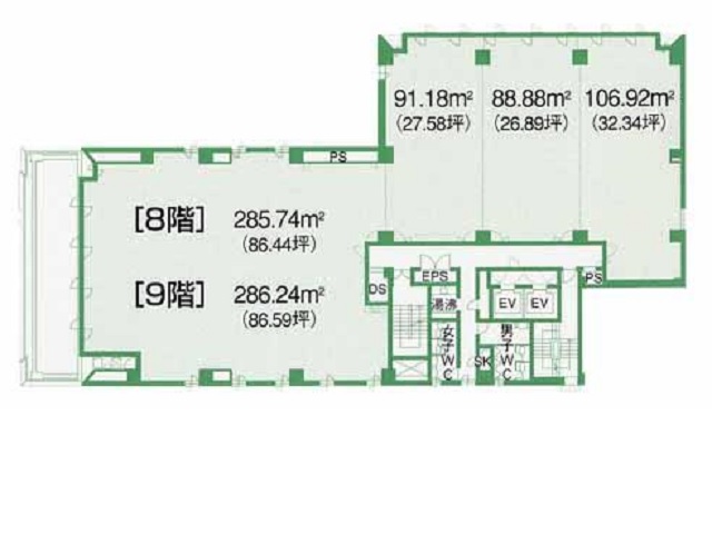 - 竣工/1989年2月 耐震基準/新耐震基準 基準階面積/173坪 地上9階 地下1階建て