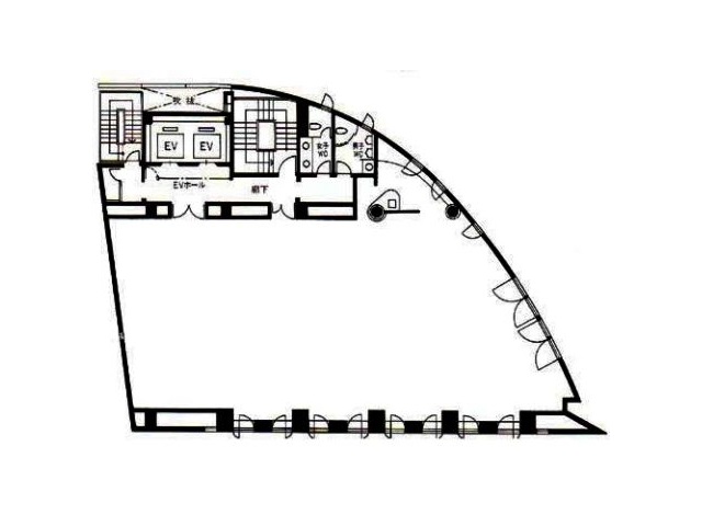 外観が丸みを帯びた特徴的な形状をしており、視認性の髙いオフィスビルとなってございます。金融機関様もご入居してございます。