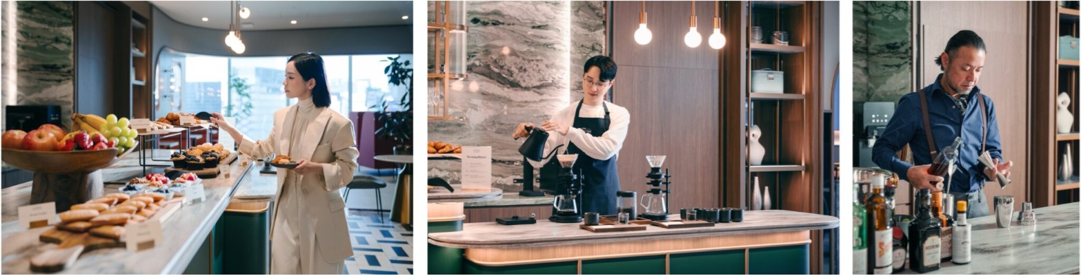 シンガポールの高級紅茶ブランドTWGとのコラボによる「TWGティートランク」、こだわりの「%アラビカ」コーヒー、平日の朝食提供、ビールやワイン・おつまみを楽しめるアペリティフアワー、さらに金曜限定の専属バーテンダーによるカクテルサービスなど、上質なホスピタリティが特徴。