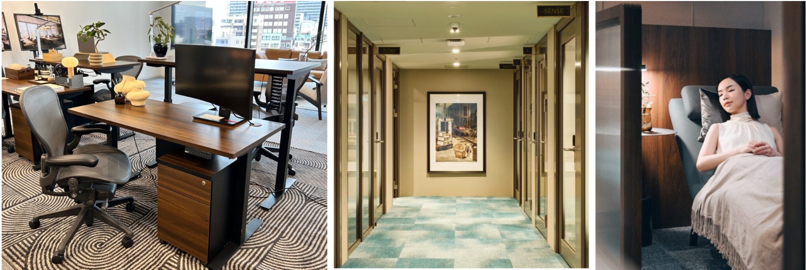 オフィススペースでは、人間工学に基づいてデザインされたHerman Miller「アーロンチェア」と電動昇降デスクを採用。集中とリフレッシュを切り替えるNap(お昼寝)スペースも備え、快適性と生産性を両立。全センターで日本語・英語のバイリンガル対応を行い、海外からのご利用でも安心してご活用いただけます。