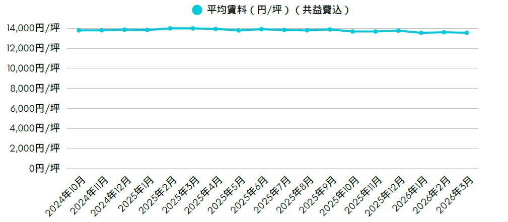 【2026年3月】大阪賃貸オフィスの平均賃料:13,555円/坪(共益費込)