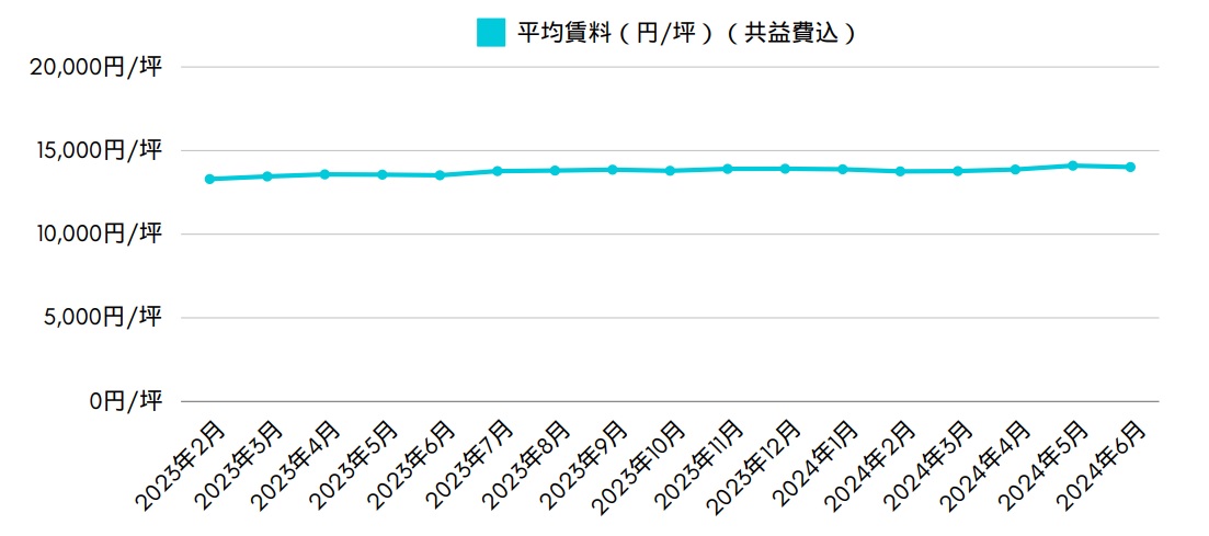 平均賃料は、先月の14,099円/坪(共益費込)と比較して微減の結果となりました。