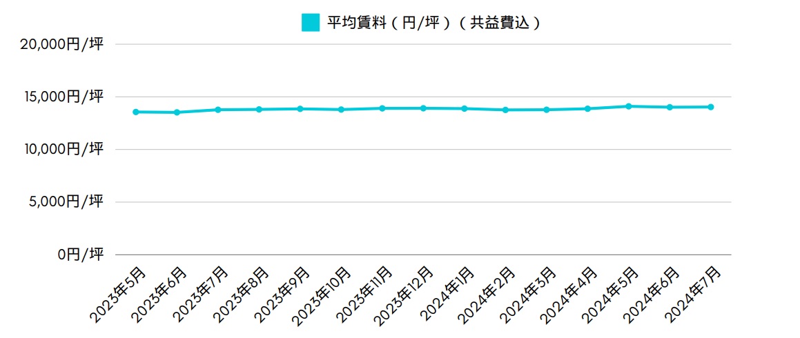 平均賃料は、先月の14,015円/坪(共益費込)と比較して微増の結果となりました。