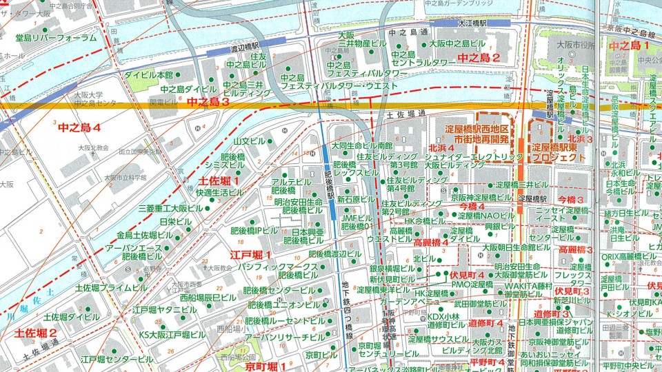 肥後橋は、四つ橋線「肥後橋駅」を中心にして、交通の便が非常に良好です。大阪のオフィスエリアの中心である梅田、淀屋橋、本町へも徒歩で移動可能な範囲に位置しており、ビジネスの移動や通勤が非常に便利です。さらに、大阪駅や新大阪駅にもアクセスがしやすく、遠方からの来客や出張にも対応しやすいエリアです。