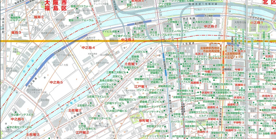 ※中之島1丁目には大阪市役所や中央公会堂などがありますが、2024年現在、賃貸オフィスビルは有りません。